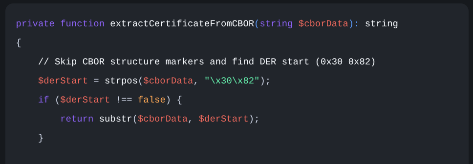 - Extract certificate from CBOR